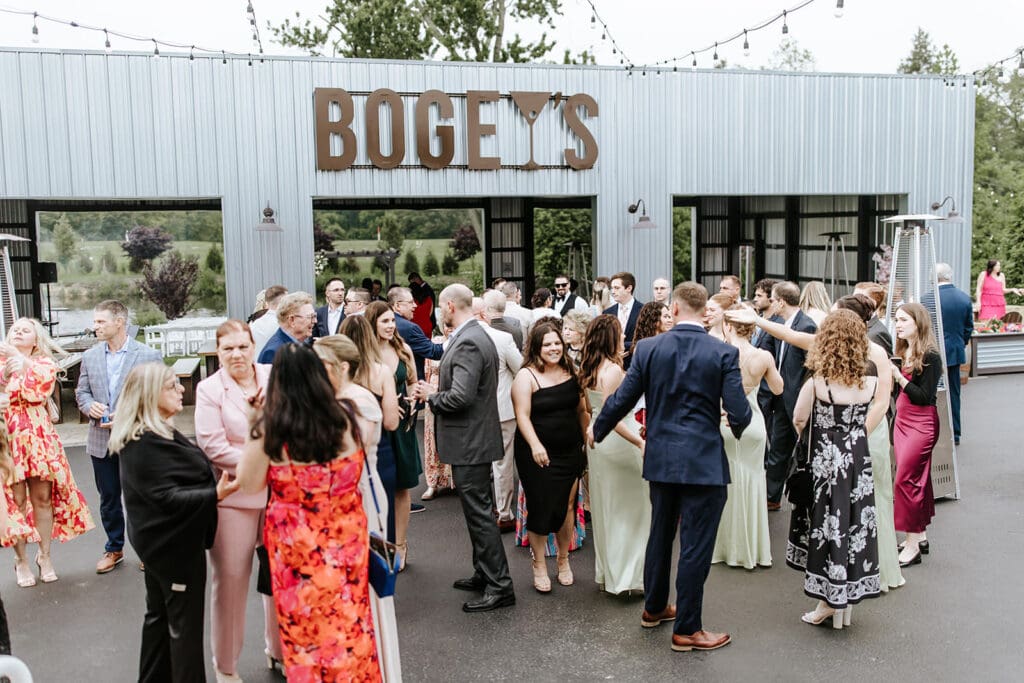 Let’s talk about the cocktail hour, because Bogey’s takes it seriously. Their 1.5 hour cocktail hour option is so great. It gives guests plenty of time to enjoy the food (which is so good), explore the outdoor space and greet each other before heading into the reception. For couples, this extended timeline means more freedom: sneak off for sunset portraits, spend time with family, or just breathe a little before the party really kicks off. If you’re not doing a first look, this is great to get your portraits completed AND enjoy cocktail hour.