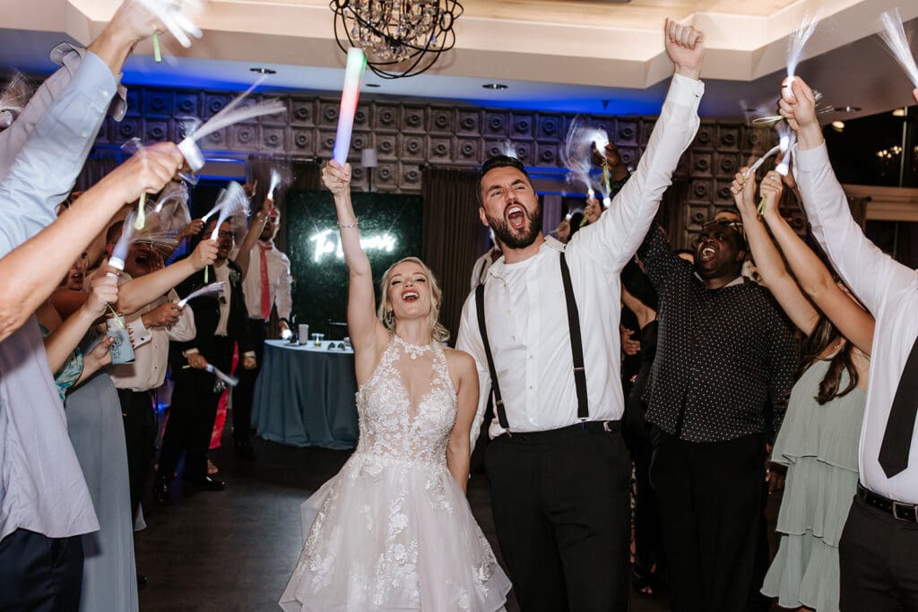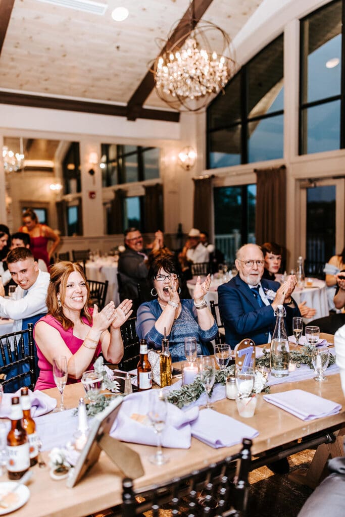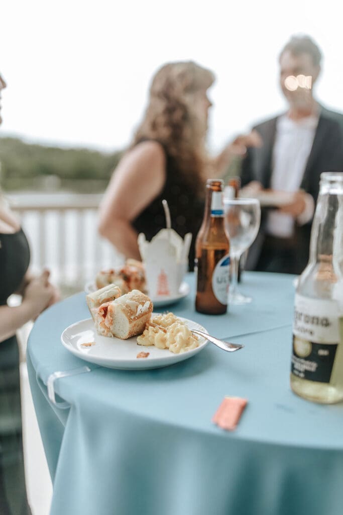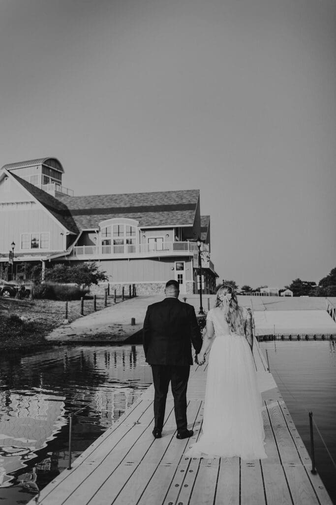 As a photographer, one of my favorite photo opportunities is bringing the couple downstairs by the dock during cocktail hour. While loved ones cheer from above, the couple gets to pause and take in the celebration unfolding around them. It’s often one of the most emotional and grounding moments of the day, a chance to see your people, all gathered in one place, celebrating you!