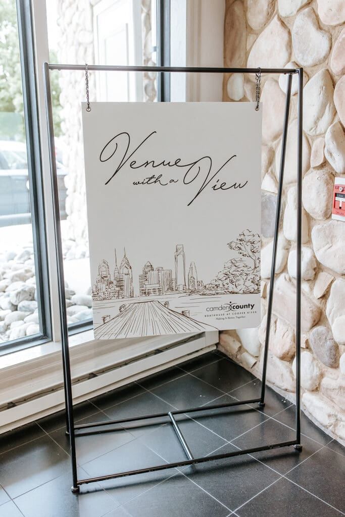 There are venues with views and then there are venues that feel completely rooted in purpose. If you’re looking for an immersive vibe in your venue, you’re going to want to keep reading! The Camden County Boathouse sits along the Cooper River, where rustic textures and refined details come together in a space that feels both modern and welcoming. Think vaulted ceilings, reclaimed beams, sculptural chandeliers and two stories of natural light all overlooking the Philadelphia skyline. With room to host up to 200 guests, the space is designed for gatherings that feel both intimate and expansive.