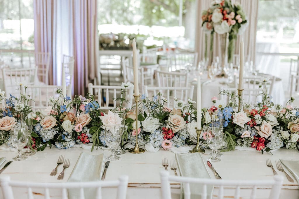 This combination of Ramblewood’s built-in amenities, like signautre cocktails, food stations and outdoor seating, with creative vendor styling shows just how customizable the cocktail hour can be. Whether you want it to feel cozy and vintage-inspired or fresh and modern, the space can be tailored to match your wedding vision.