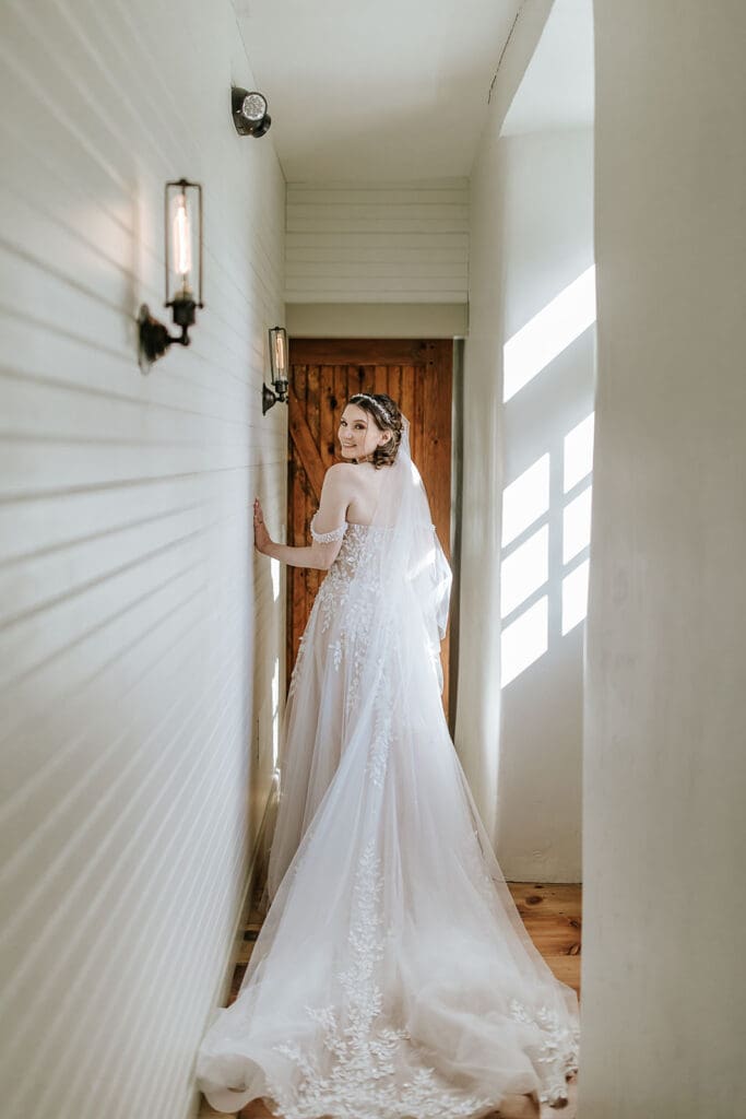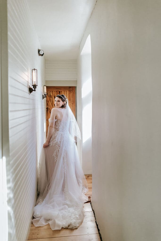 Rhianon’s bridal portraits needed their own moment here and it started the second I stepped into the bridal suite. The entrance hallway is one person wide! If someone’s coming the other way, you wait. Think one-car bridge energy but in the BEST WAY.