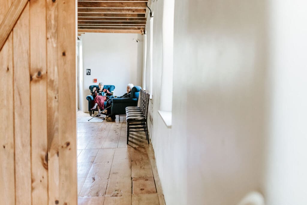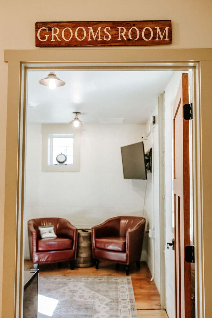 The one-person hallway entrance to the bridal suite at The Mill at Manor Falls.