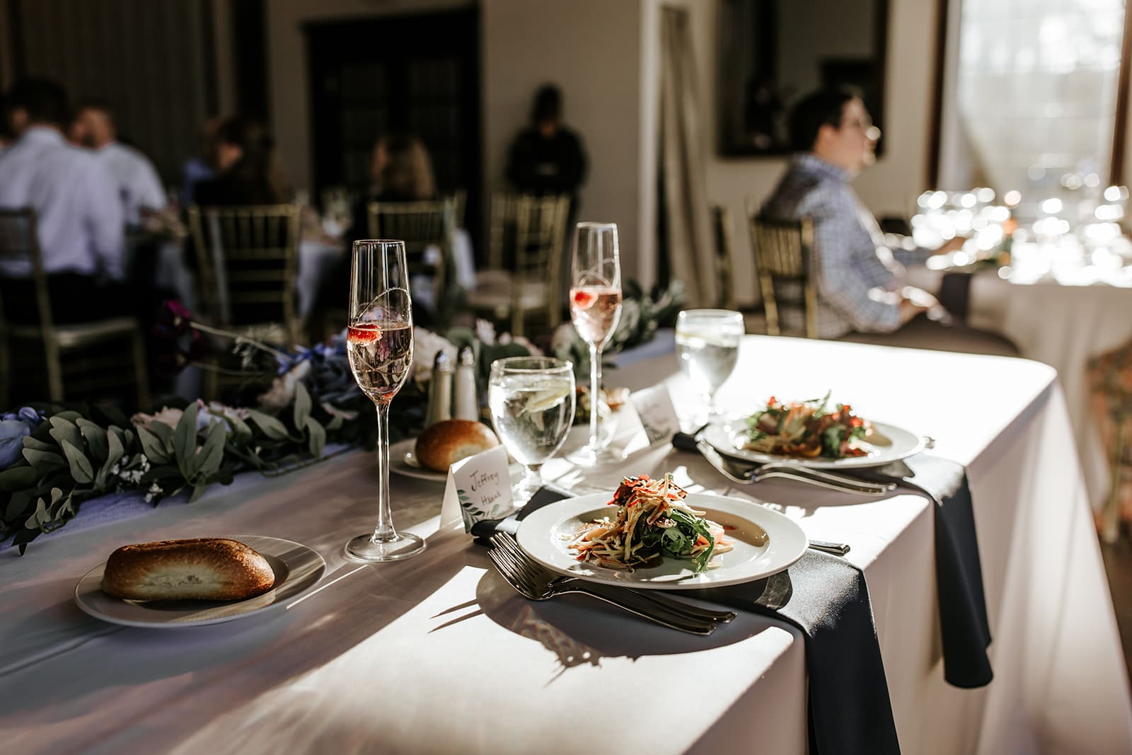 Your wedding schedule should allow your reception to feel natural and fun, without keeping guests waiting. Keep the energy high by rolling right into dances & toasts as guests settle in for dinner.