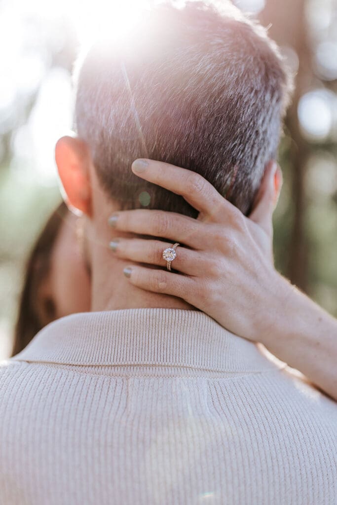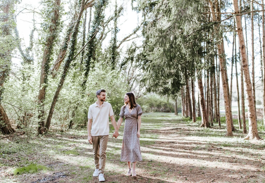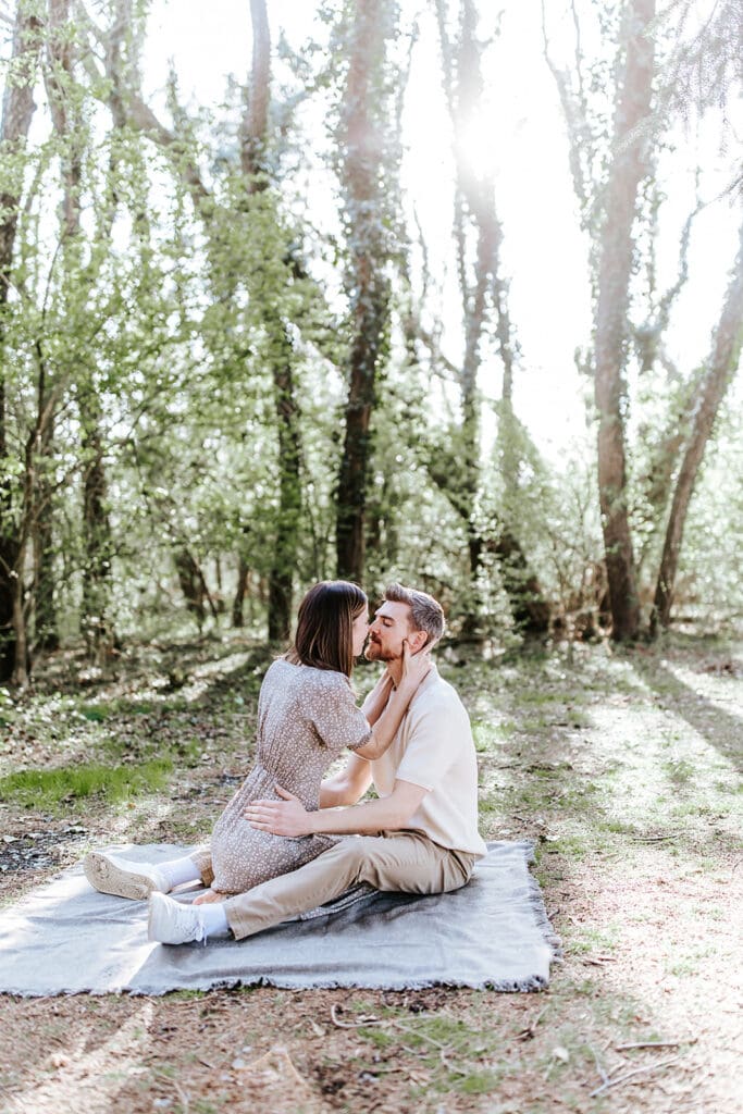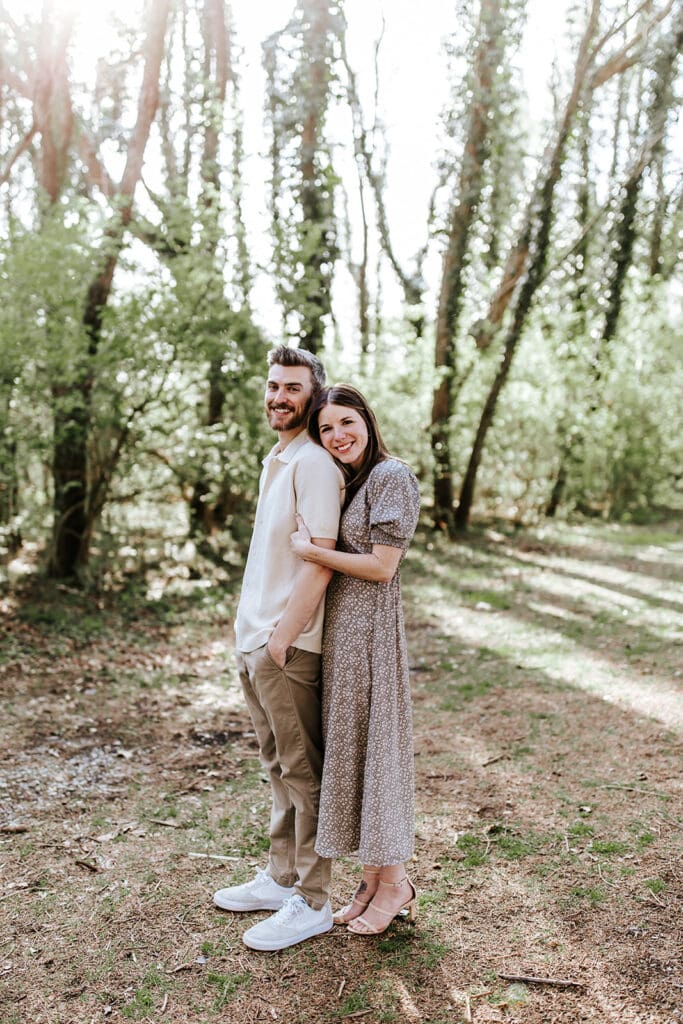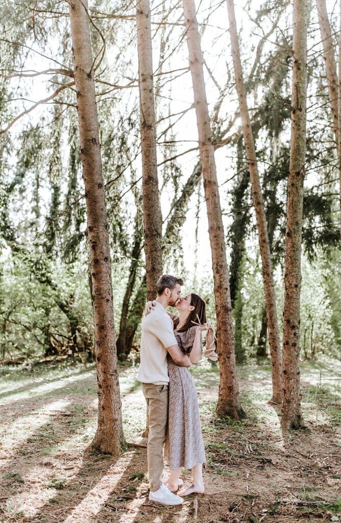 If you want to see the sun flare through the trees, start your session about two hours before sunset. The sun will be high enough to shine through the branches but not so low that it’s hidden.