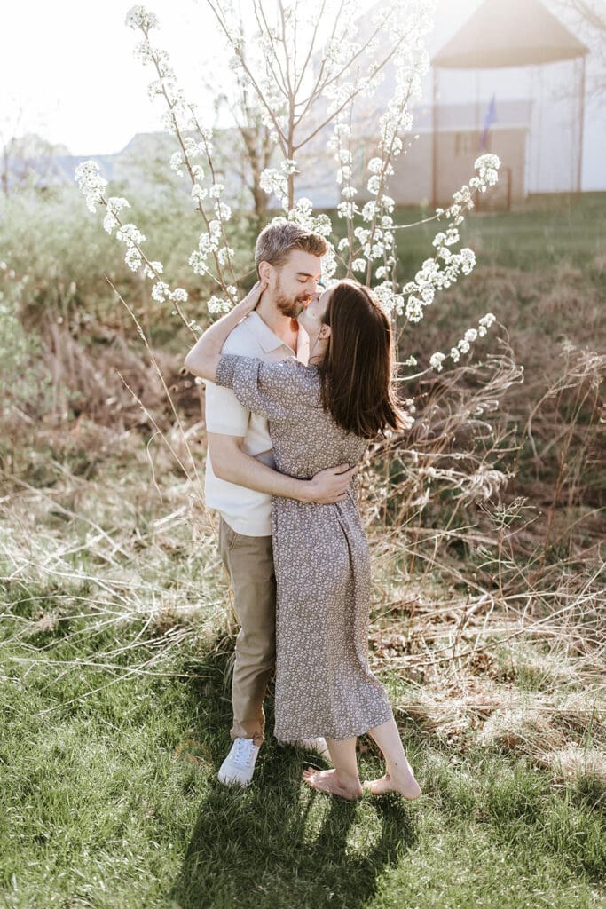 We wandered between tree-lined paths and wide open fields, stopping to soak in every ounce of sun. The barn in the distance added the perfect backdrop without pulling too much attention and the entire park felt private and calm, even in golden hour. A spring bonus: the gorgeous flowering tree!