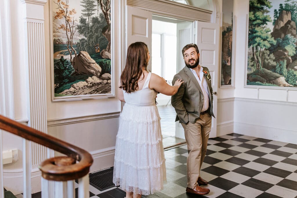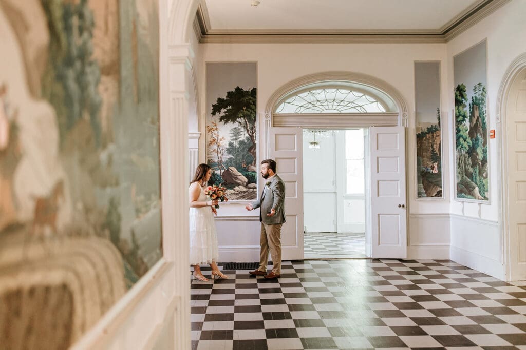 Highlands Mansion and Gardens, located just outside of Philadelphia, is a favorite for couples planning an intimate Pennsylvania wedding. From its gorgeous lawns to the historic stone mansion, every corner tells a story. For Taylor and Matt, the willow tree just outside the mansion became one if their favorite elements. It is a natural backdrop for portraits and family photos that felt timeless yet personal.