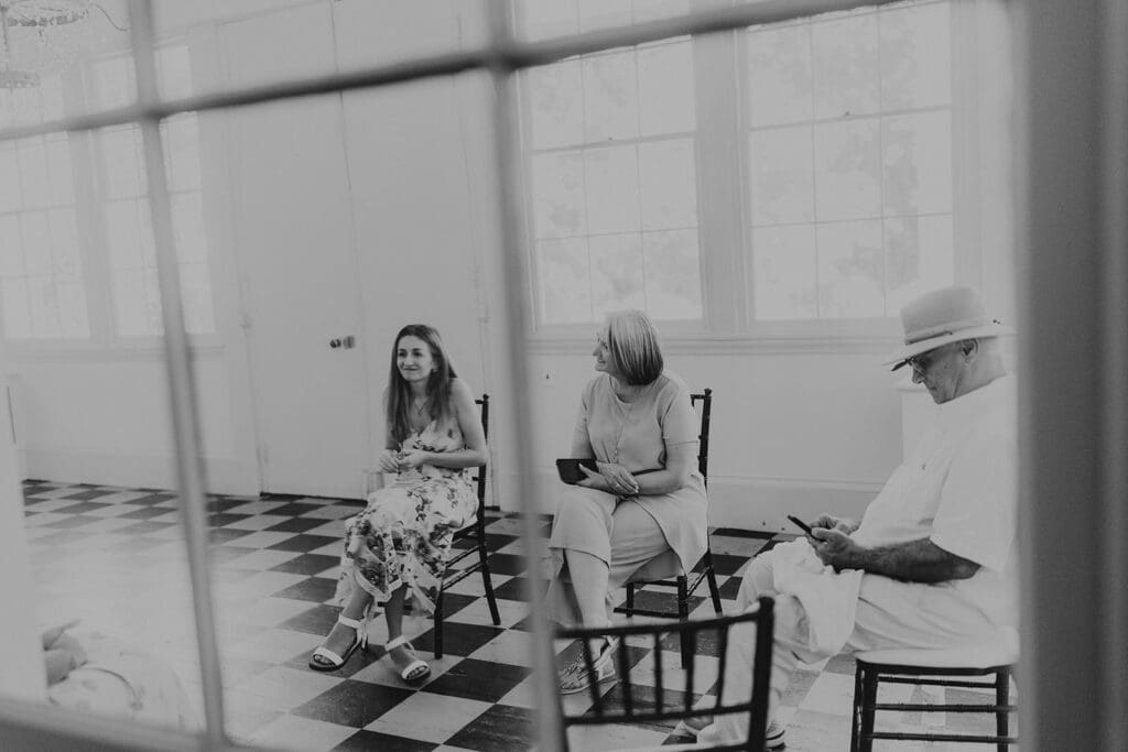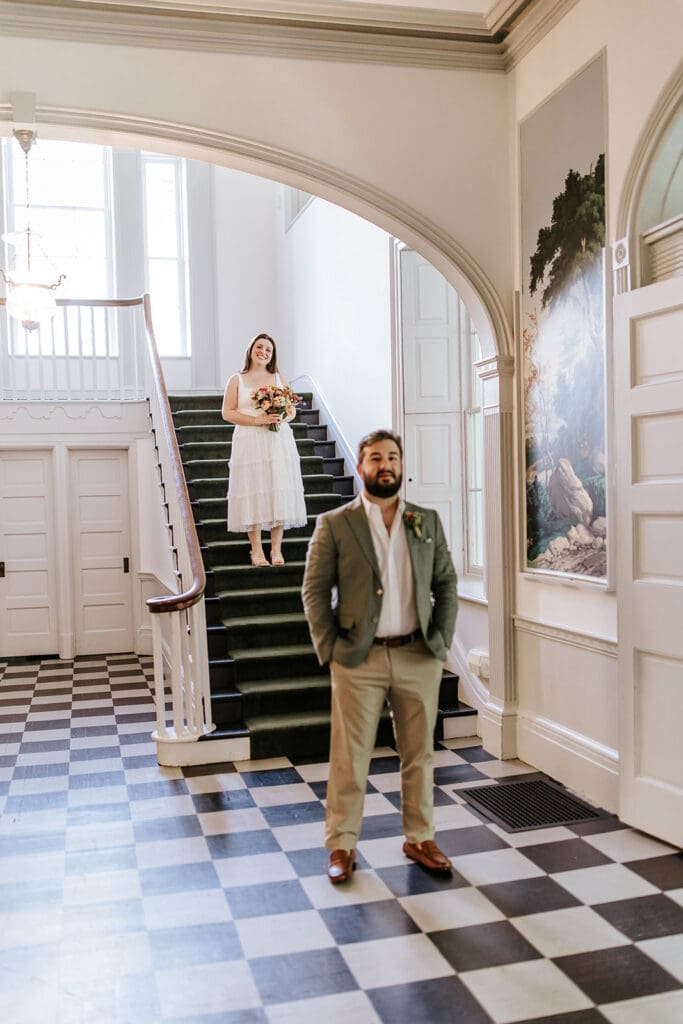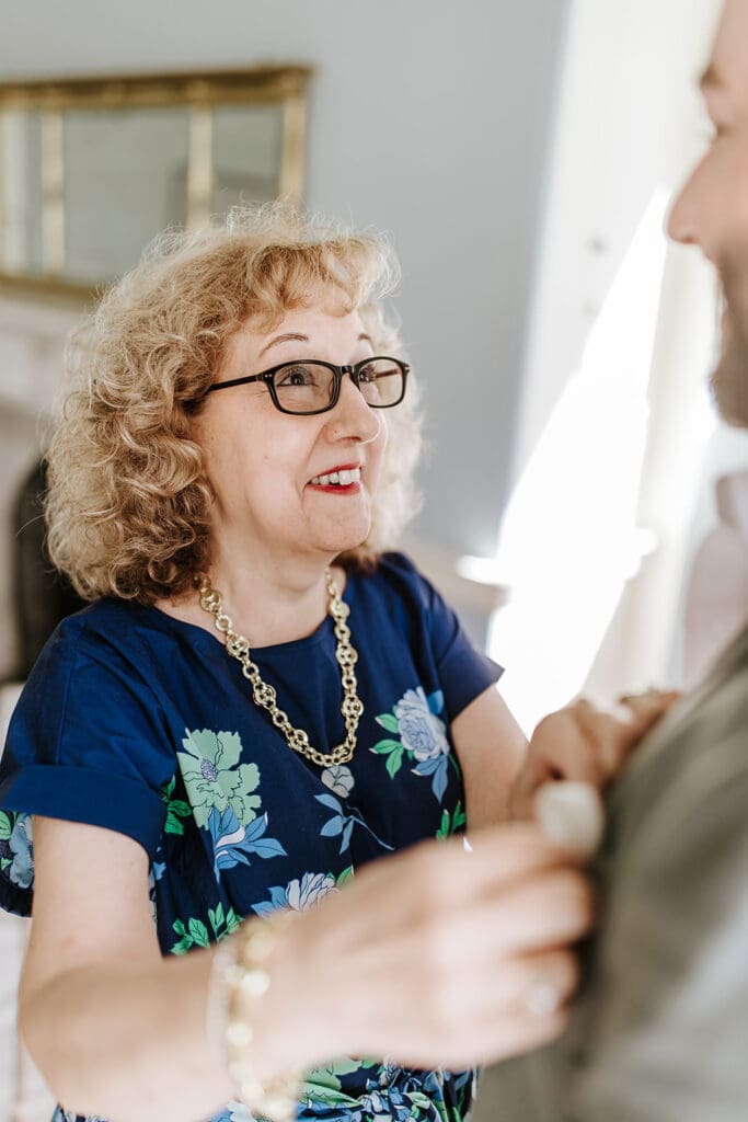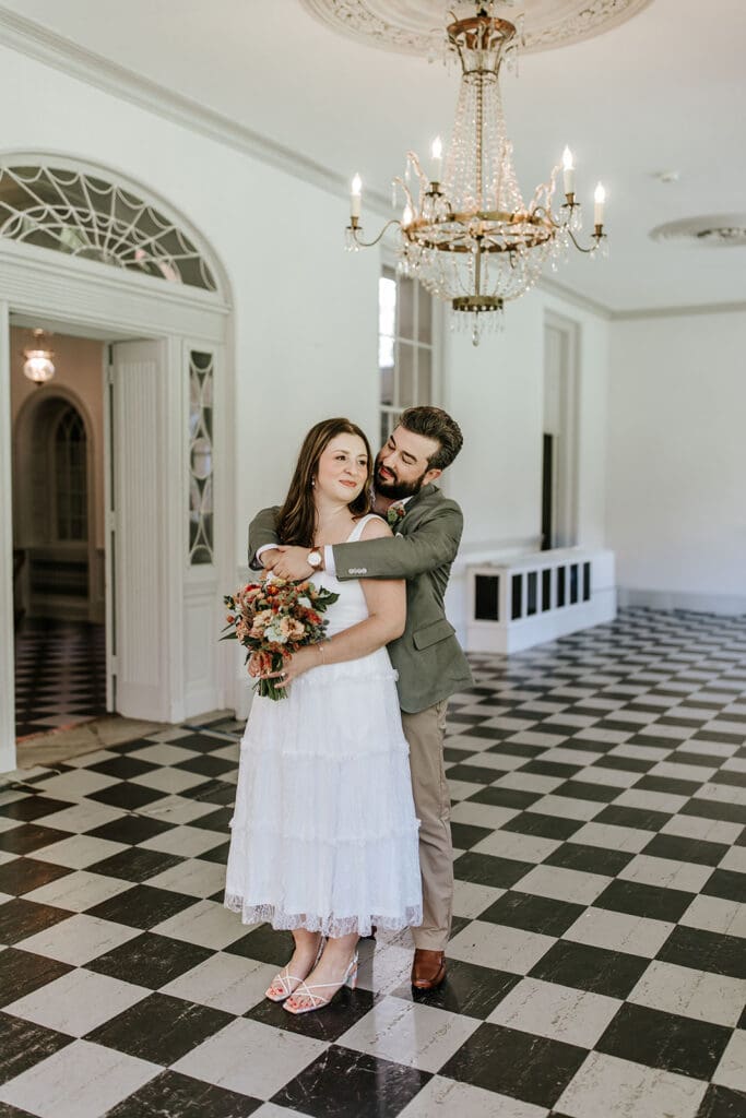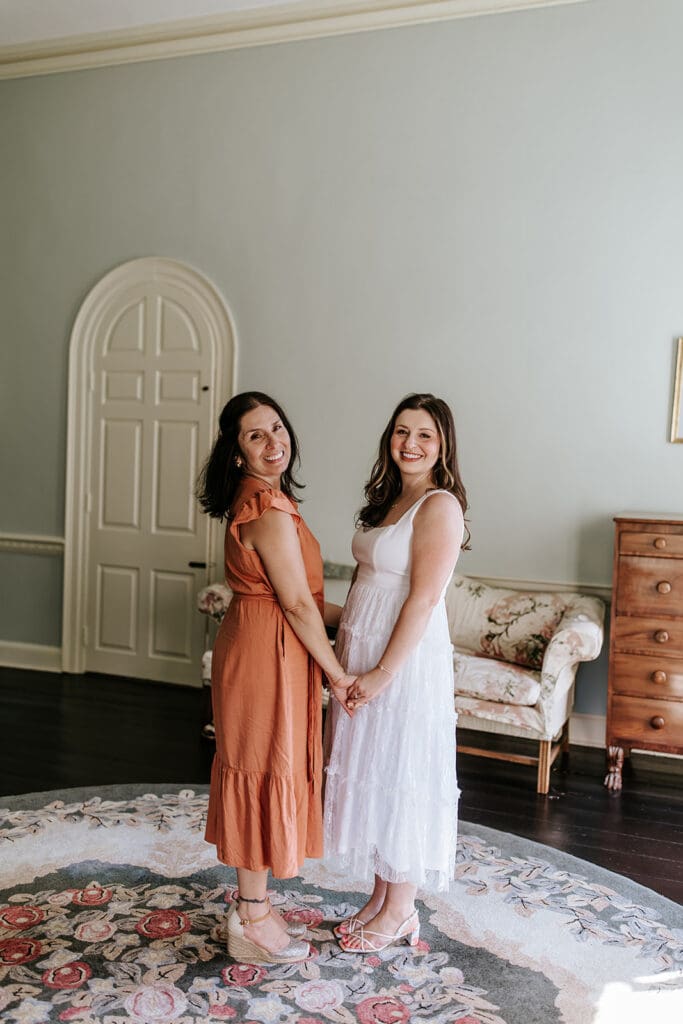 One of the most thoughtful parts of the day was how it began. Taylor and Matt invited only their parents to arrive early. They wanted those private hours helping with final details, laughing through the nerves and stepping into their wedding attire, to be a memory shared with the people who had been with them from the very beginning. These pre-ceremony portraits inside Highlands Mansion, framed by its elegant chandelier and historic architecture, are some truly special moments.