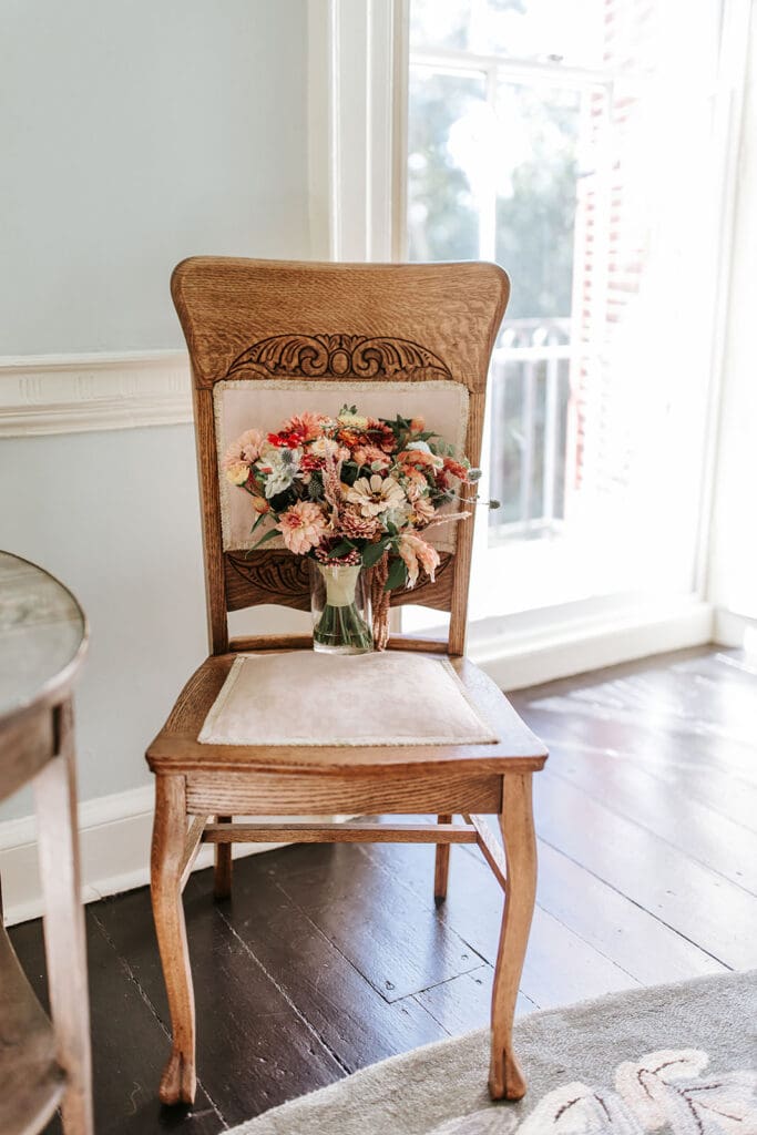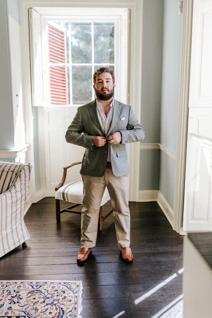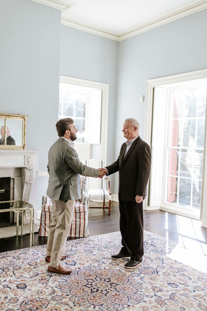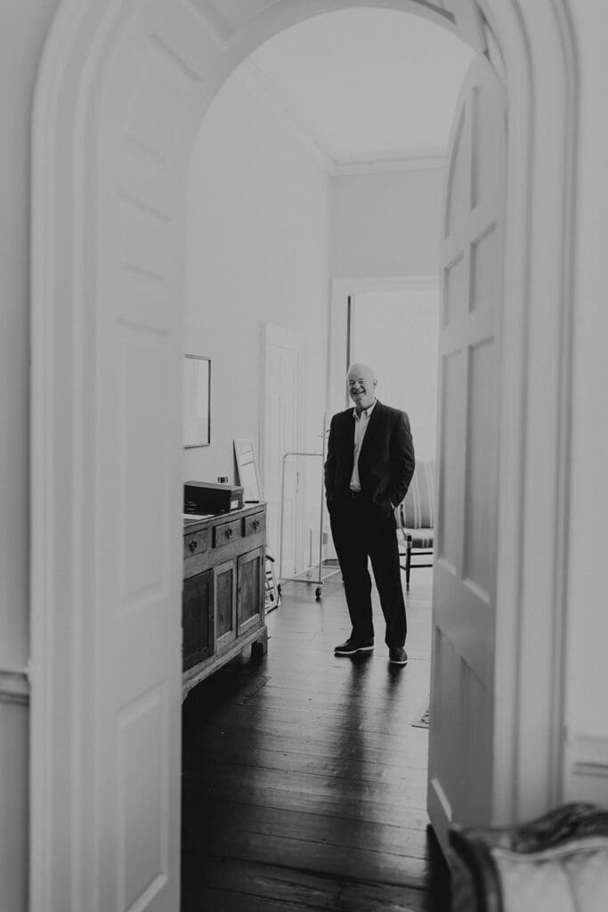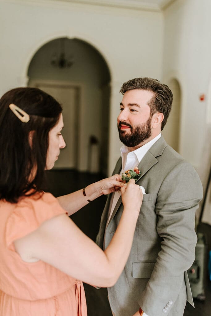 One of the most thoughtful parts of the day was how it began. Taylor and Matt invited only their parents to arrive early. They wanted those private hours helping with final details, laughing through the nerves and stepping into their wedding attire, to be a memory shared with the people who had been with them from the very beginning. These pre-ceremony portraits inside Highlands Mansion, framed by its elegant chandelier and historic architecture, are some truly special moments.