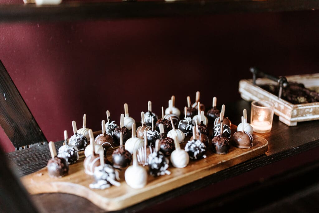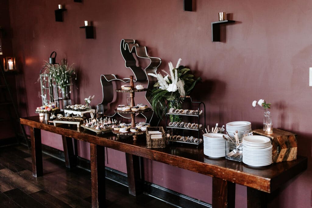 A signature, interactive dessert experience that goes beyond a simple table: think chocolate mousse, cheesecake drops, cake pops, petits fours, truffles, macarons, and warm milk & dark chocolate fondue with all the dippers (churros, brownies, fruit, pretzels, and more). All goods are baked by their partner Stella Baking Company.