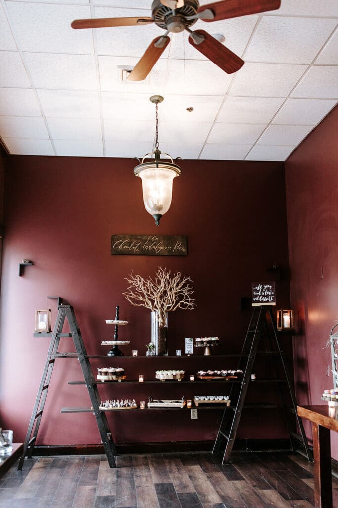 The rustic charm of The Timbers and the colored foliage works beautifully with seasonal florals and décor.