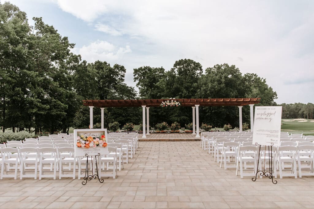 Outdoor spaces for mingling and portraits on the course
