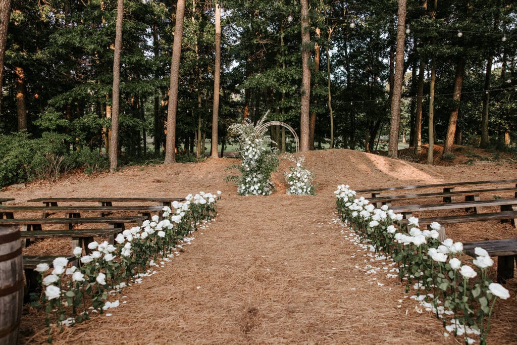 The Pergola is surrounded by fresh blooms, making it a natural choice for outdoor ceremonies.