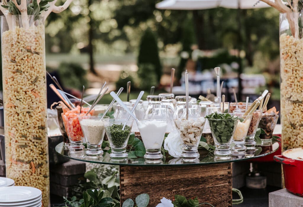 From scallops wrapped in bacon, bistro steak skewers with chimichurri and spicy tuna tartare to mushroom ravioli, arancini, and caprese shooters, both classic and elevated options are covered. (Vegetarian, vegan, GF, and DF items available.)