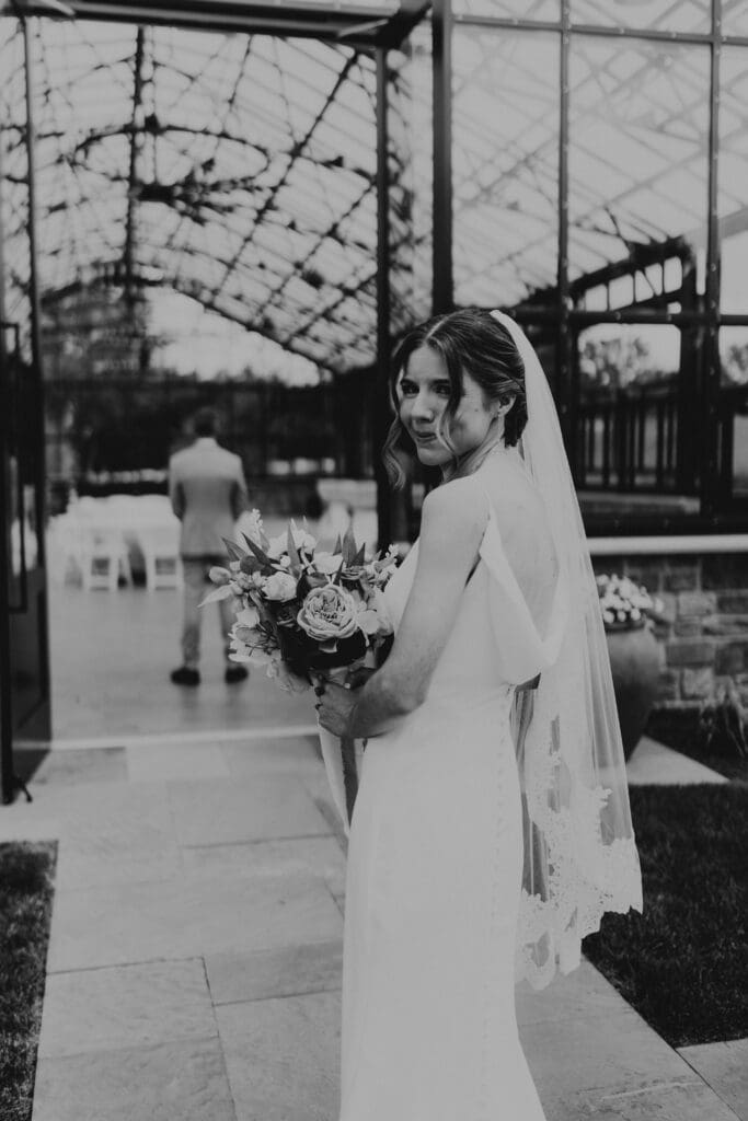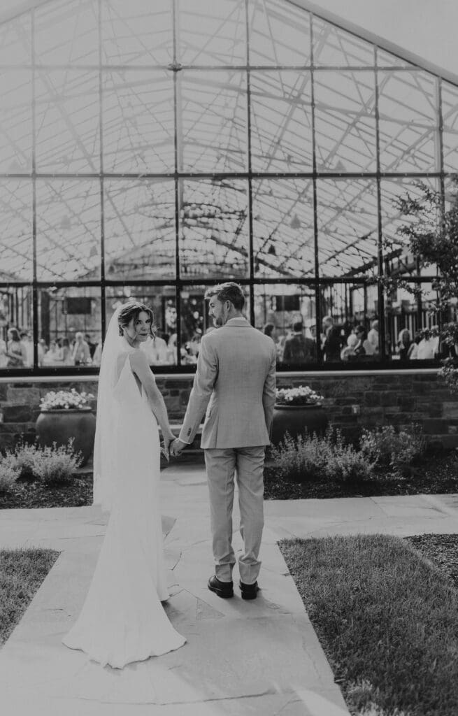 The fully glass-enclosed greenhouse ceremony or cocktail hour space is the magic of Westwynd Gardens. It offers all the light, views and natural beauty of an outdoor wedding, without the stress of a rain plan. Even if the skies turn gray, your ceremony still feels intentional, magical and open to nature. Plan A and Plan B both feel equally beautiful, which is rare and incredibly valuable for couples planning ahead.