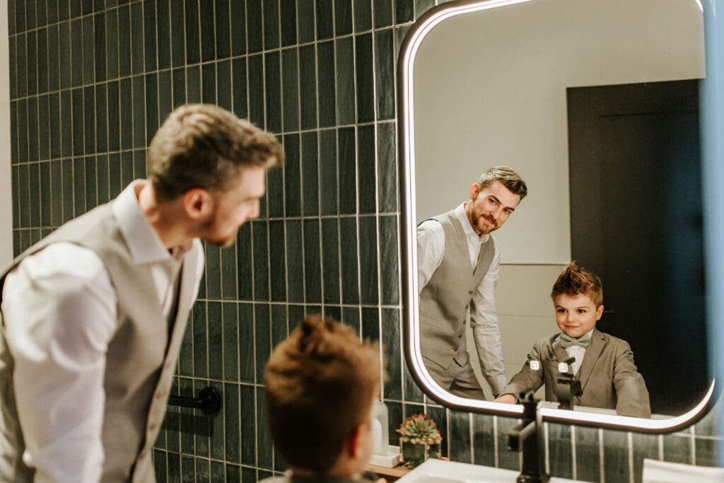 Walter and Rowan getting ready in Westwyn Garden’s groom’s suite.