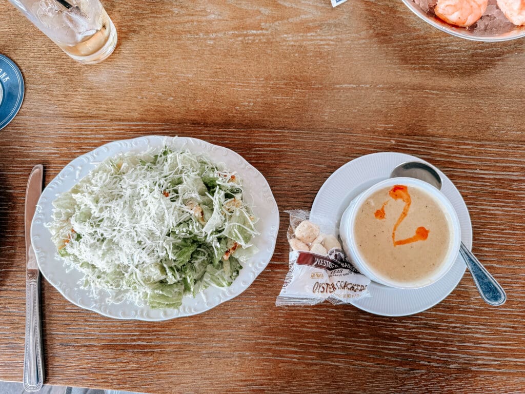 Me: creamy crab soup, Caesar salad and a mimosa