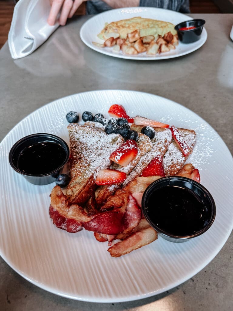 Breakfast tip: If you’re planning to eat at the hotel, go for the breakfast package when you book. We paid $42 for two days, which saved us around $45 total. Our french toast, omelette + coffee = delicious!